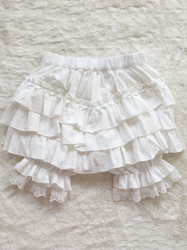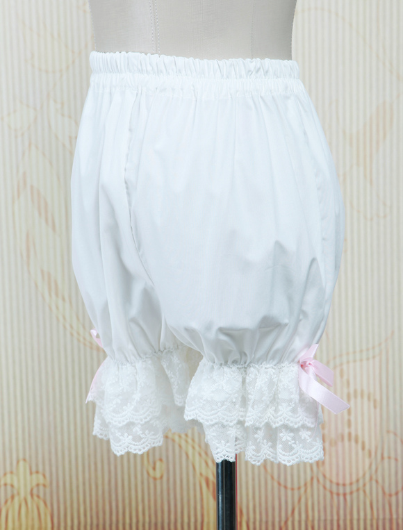 Sweet Lolita Bloomers White Cotton Lace Trim Ruffles