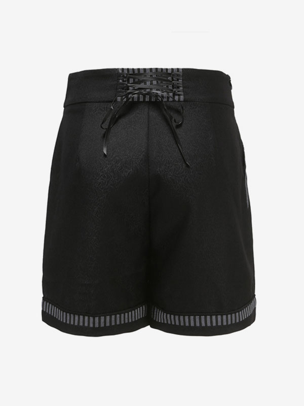 Gothic Lolita Shorts Metallic Button Lace Up Pleated Black Detachable Lolita Culottes