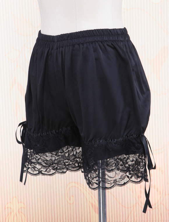 Lolita Bloomers Sweet Black Cotton Lace Trim Bow Ribbon