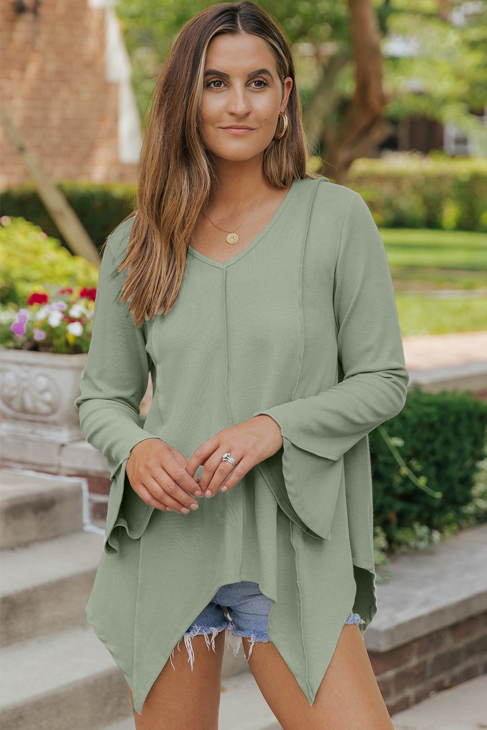 Green Loose Fit Wide Neck Batwing Sleeves Top