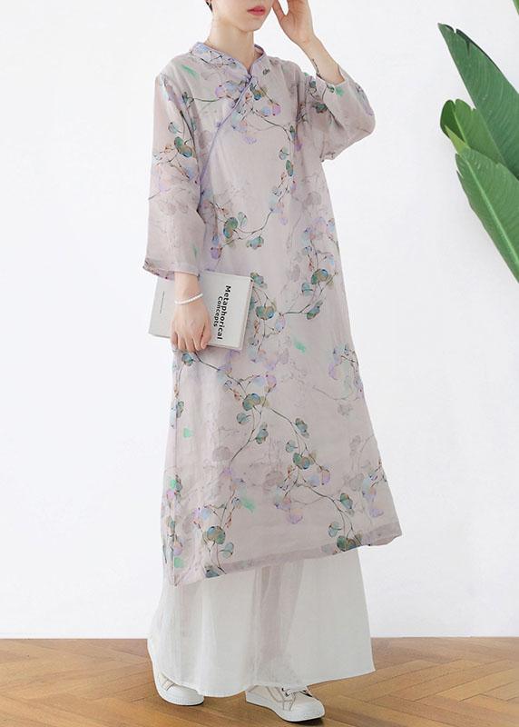 Comfy Light Purple Print Oriental Ramie Maxi Dresses Fall