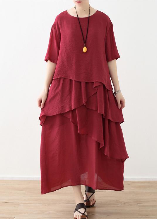 French Red O-Neck Cozy Party Chiffon Long Dress Summer