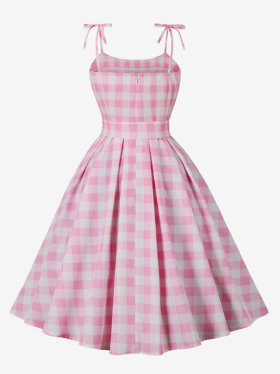 Barbie Pink Gingham Dress 1950s Audrey Hepburn Sleeveless Plaid Vintage Dress