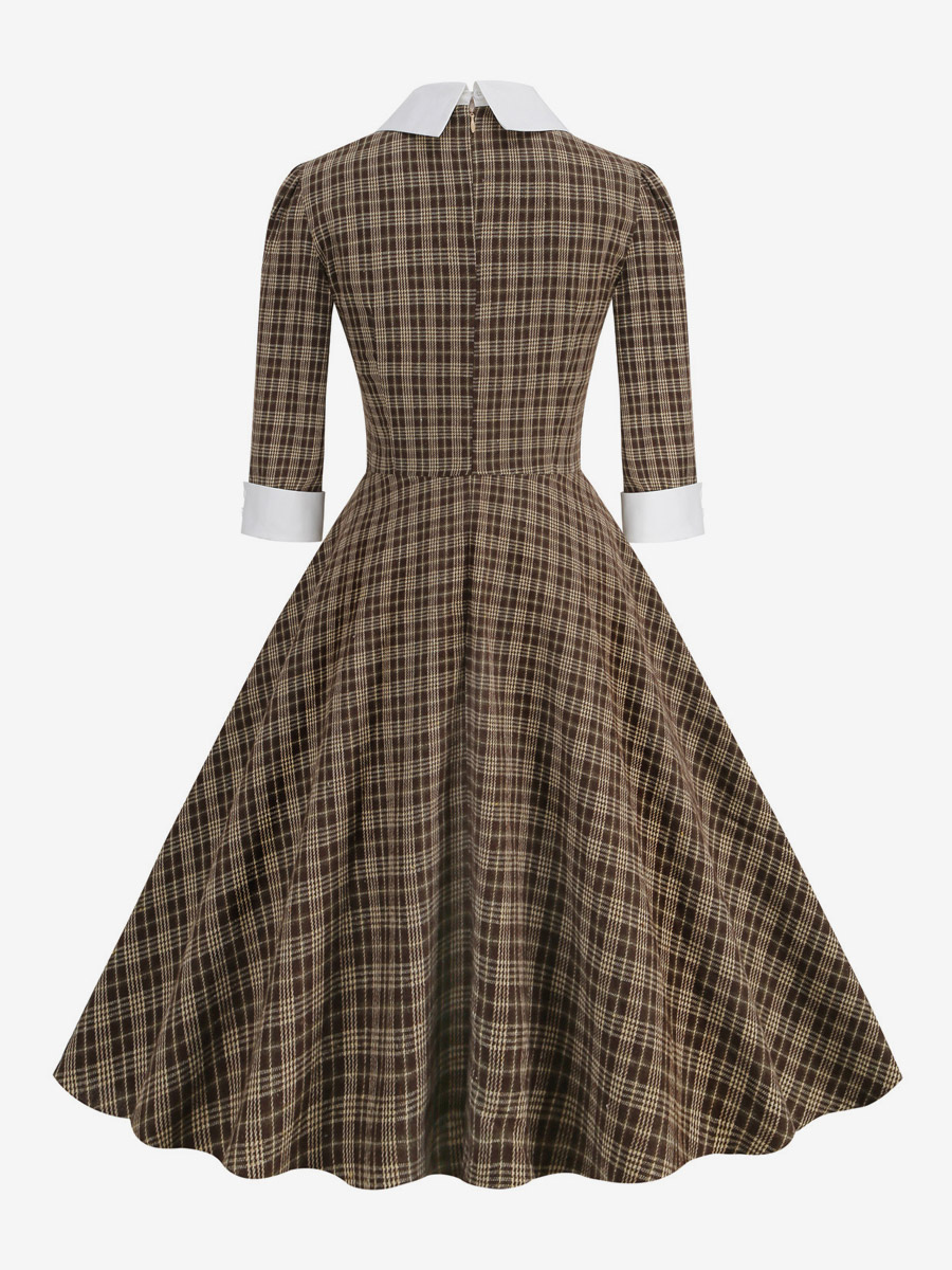 Retro Dress Bows Scottish Plaid Audrey Hepburn Style Elegant Dresses
