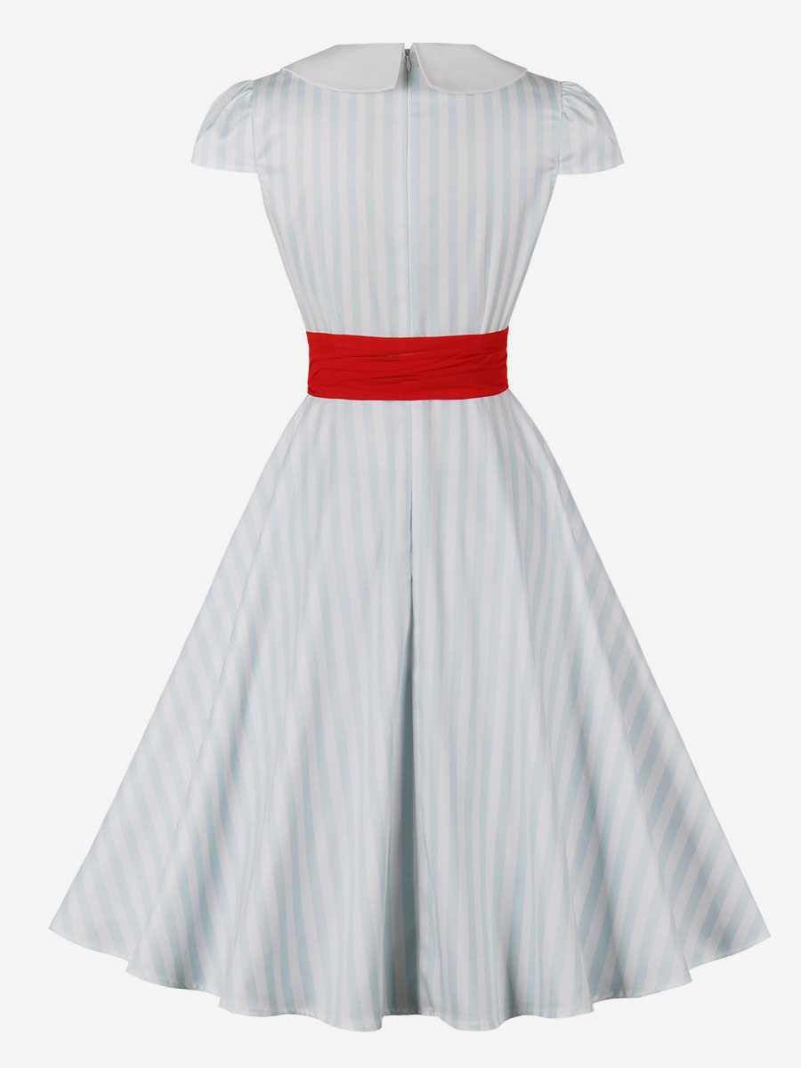 Contrast Bow Tie Dress Stripes Peter Pan Collar Cap Sleeves Vintage Dresses