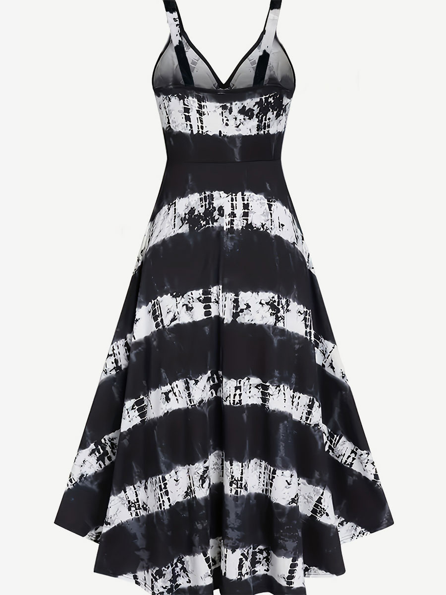 Vintage Dress Straps Neck 1950s Audrey Hepburn Style Lace Up High Low Design Sleeveless Zebra Print Long Black Swing Dress