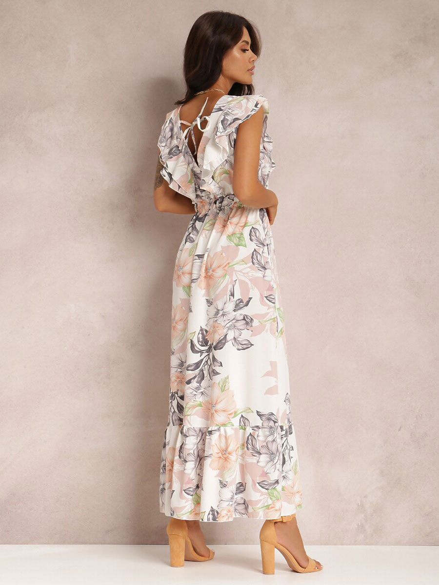 Floral Dress Maxi Dresses Dresses Floral Print Backless Pleated One-Shoulder Short Sleeves Backless Bohemian Summer