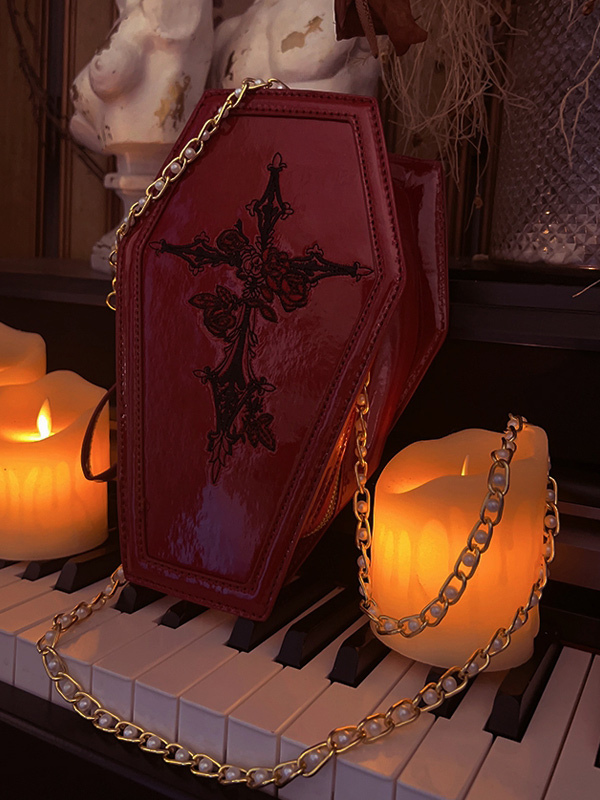 Gothic Lolita Bag Burgundy PU Leather PU Leather Cross-body Bag Lolita Accessories