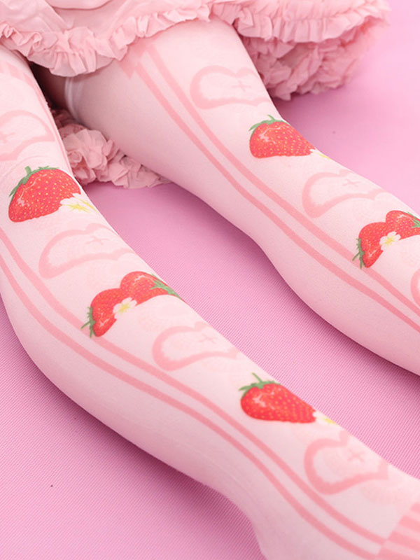 Sweet Lolita Stockings Pink Velvet Strawberry Printed Lolita Knee High Socks