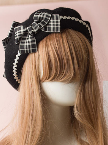 Classic Lolita Beret Plaid Bow Wool Burgundy Lolita Bowler Hat