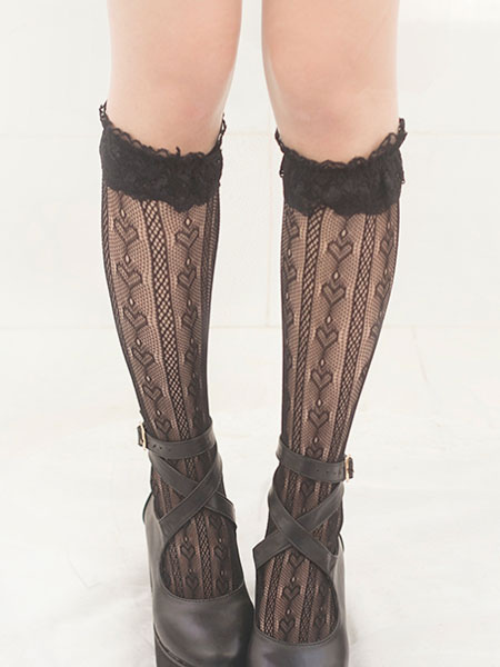 Black Lolita Stocking Bows Ruffles Lace Socks Cotton Lolita Accessories