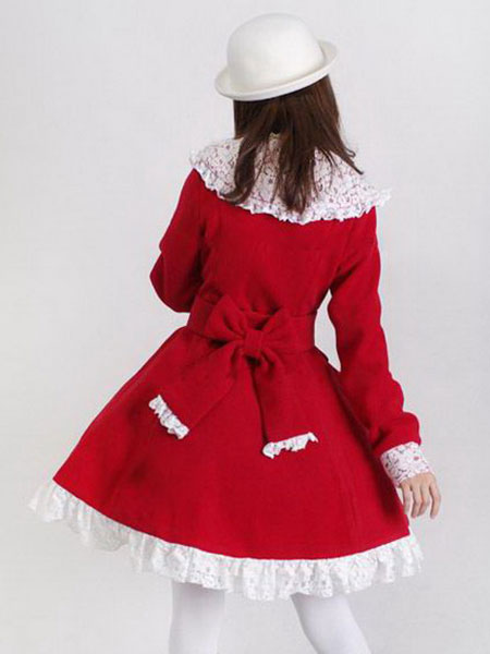 Sweet Lolita Coats Red Christmas Coat Ruffles Knit Overcoat Cotton Blend Winter Lolita Outwears