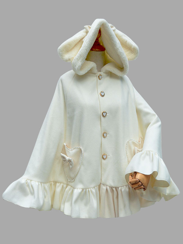 Sweet Lolita Poncho White Synthetic Piping Winter Lolita Outwears