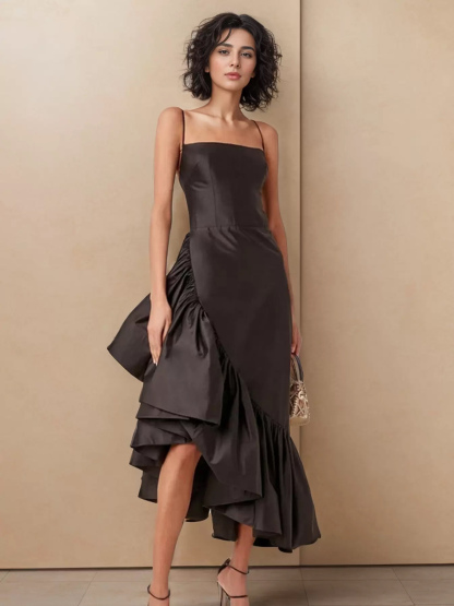 Asymmetrical Dress Spaghetti Strap Ruffles Backless Elegant Party Midi Dresses