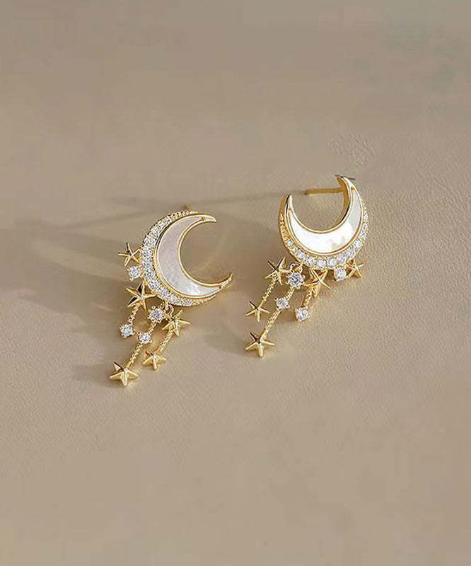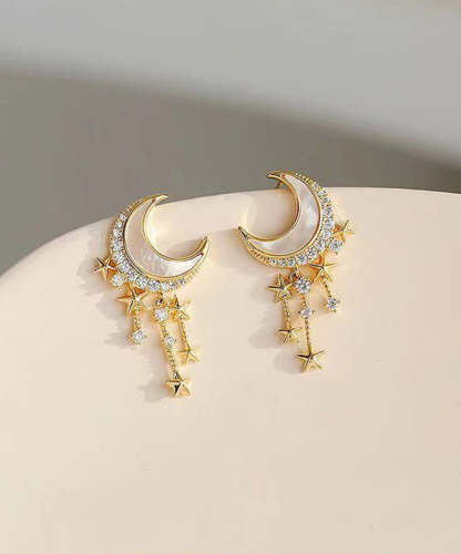 Beautiful Gold Sterling Silver Overgild Zircon Moon Star Drop Earrings