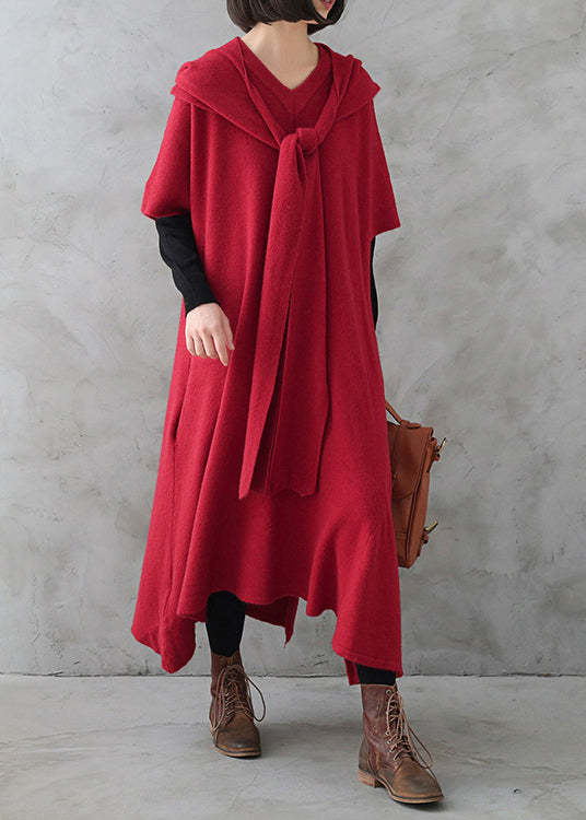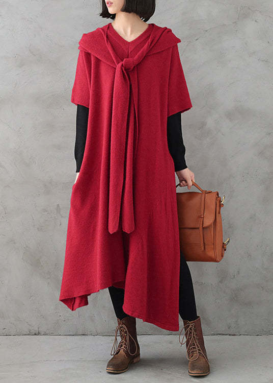 Beautiful Red V Neck Side Open Cashmere Knit Holiday Sweater Dress Fall
