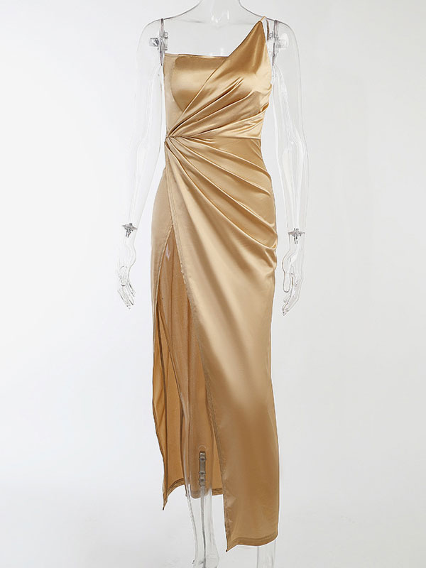 Vestido largo de fiesta de cumpleaños con un hombro y abertura alta, sexy y semi formal.