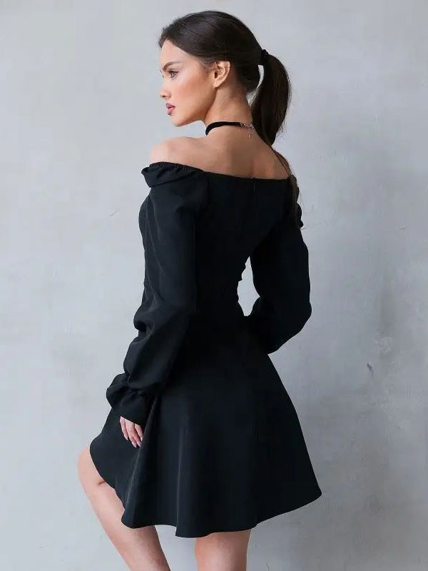 Black Dress Convertible Long Sleeves Elegant Graduation Short Swing Dresses