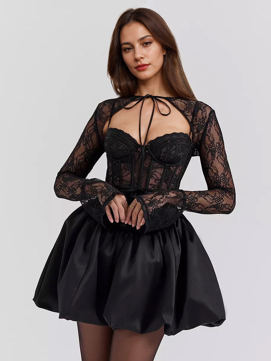 Black Lace Corset Dress With Detachable Bolero Birthday Party Puffball Mini Dress For Women 2025