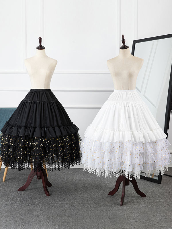 Black Lolita Petticoats Lace Polyester Stars Print Gothic Lolita Petticoat Skirt