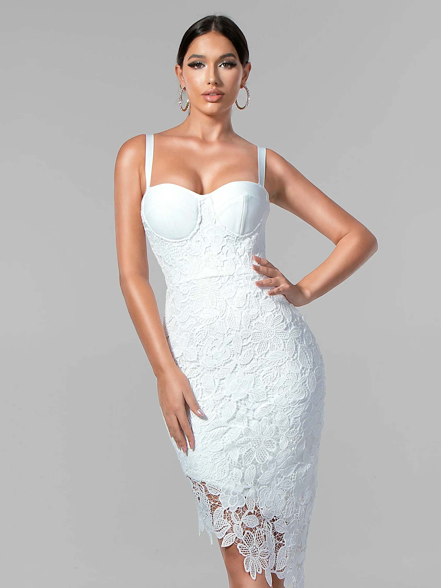 Bodycon Dress Lace Wide Strap Backless Asymmetrical Party Midi Dresses