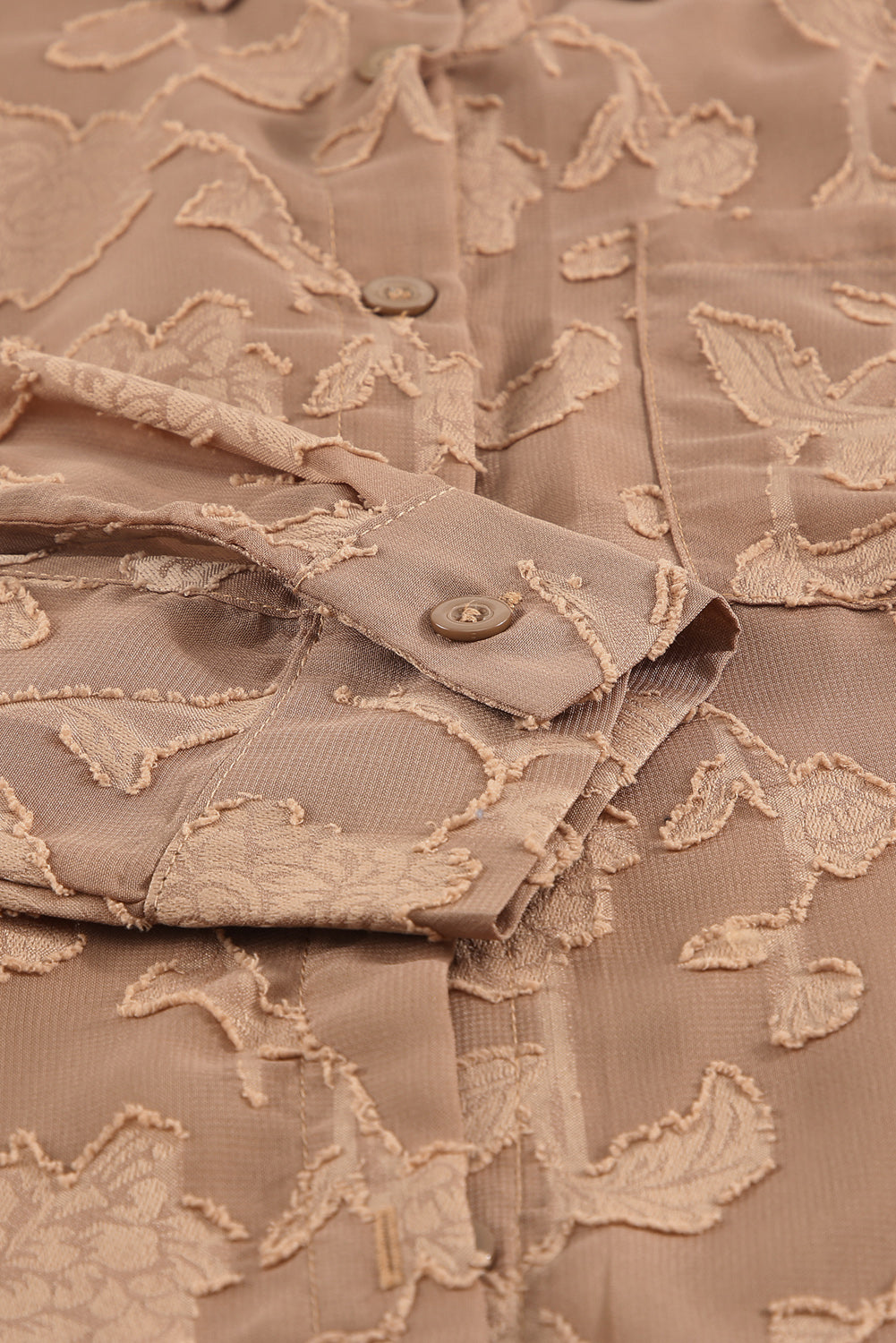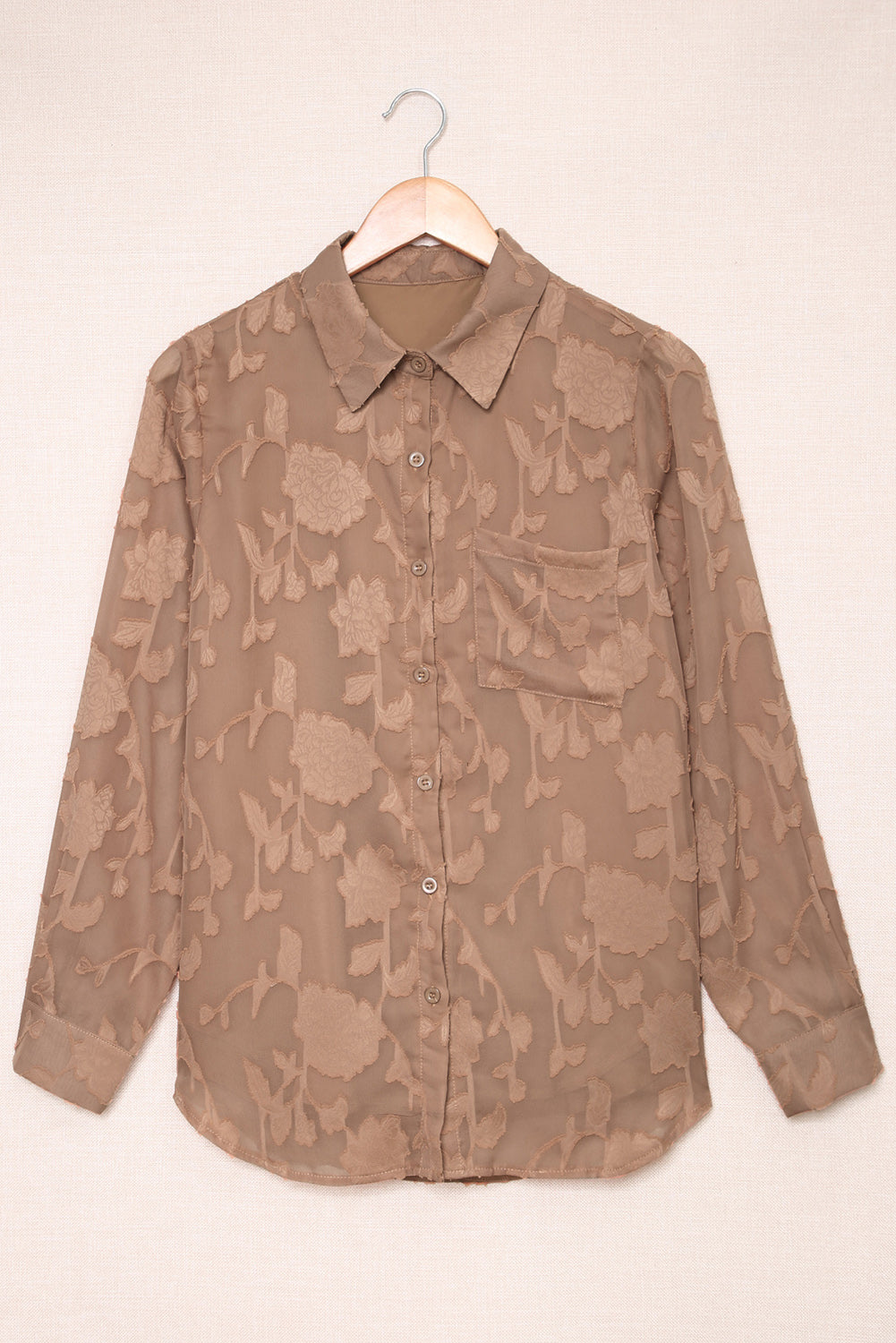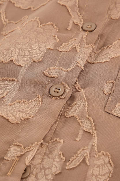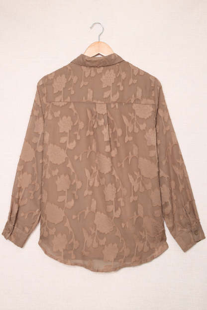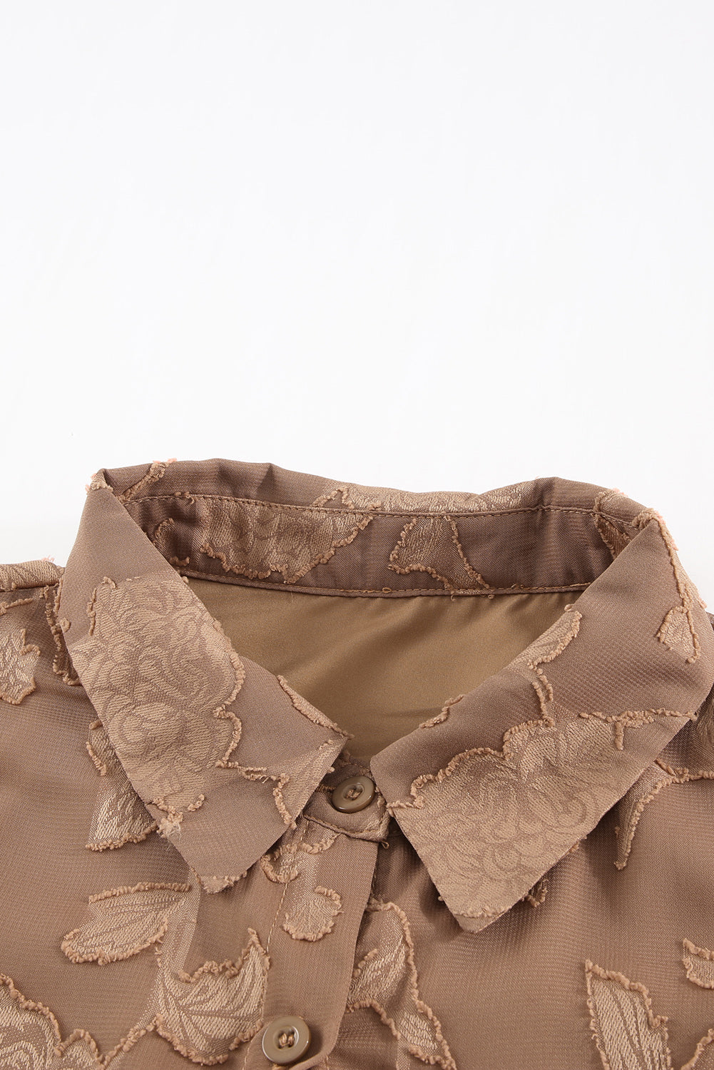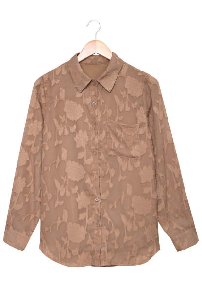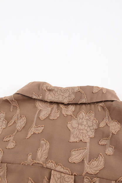 Camisa de flores con cuello marrón y textura