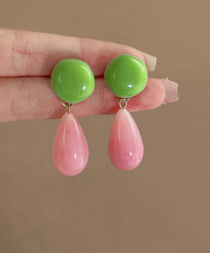Chic Colorblock Sterling Silver Overgild Alloy Resin Drop Earrings