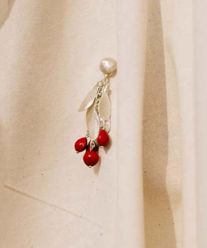 Chic Red Sterling Silver Alloy Leaves Drop Earrings