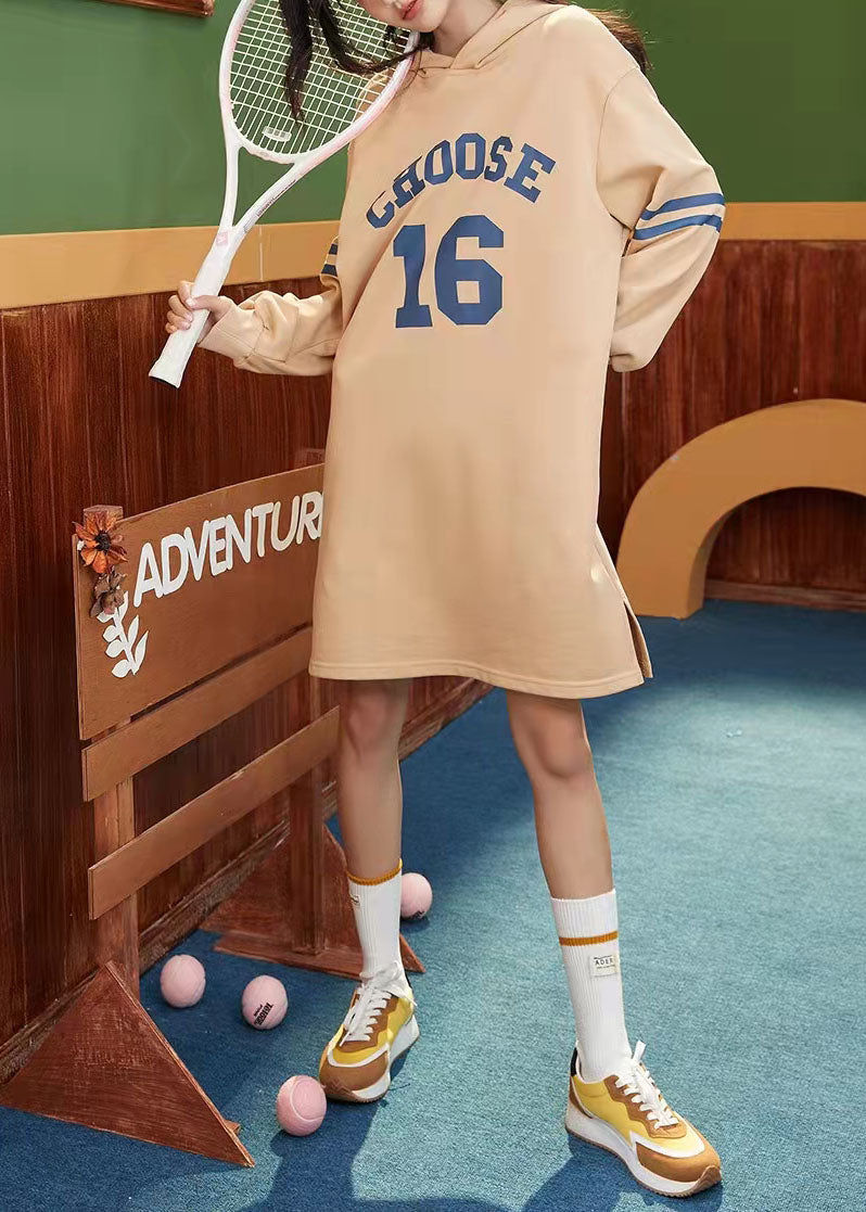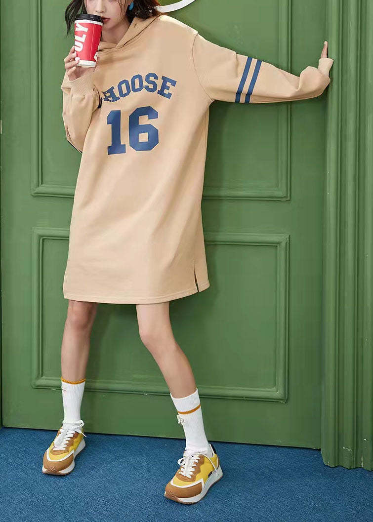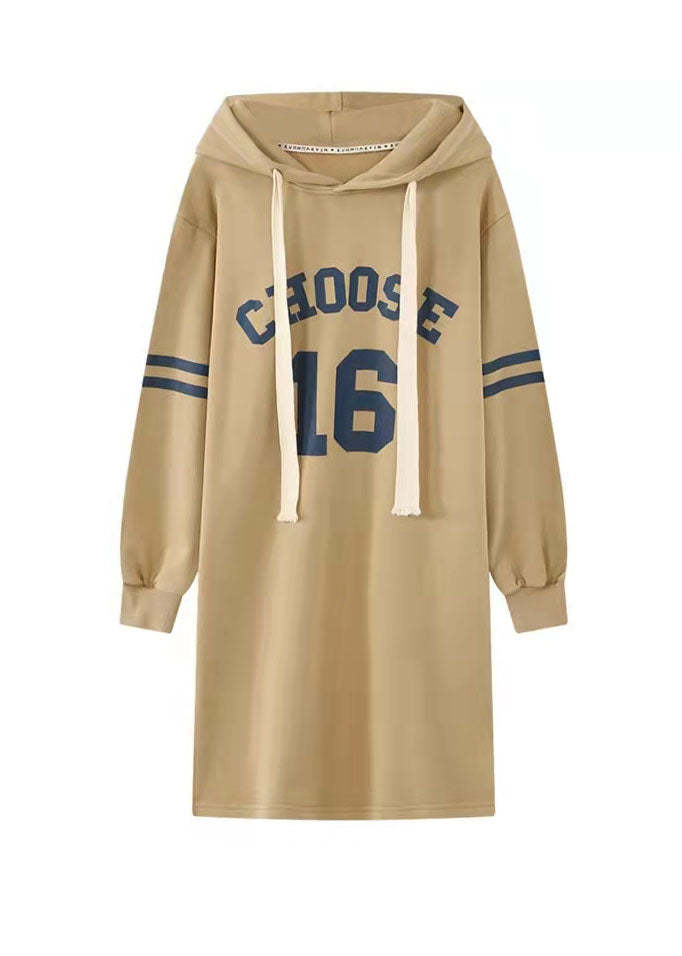 Classy Khaki drawstring Print side open Sweatshirt Spring dress