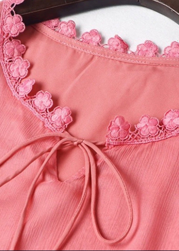 Cute Pink O-Neck Patchwork Wrinkled Silk Maxi Dress Summer