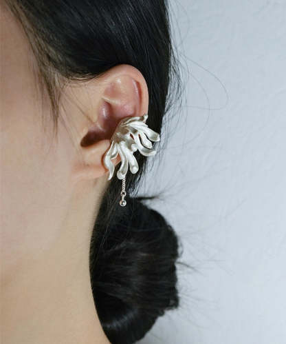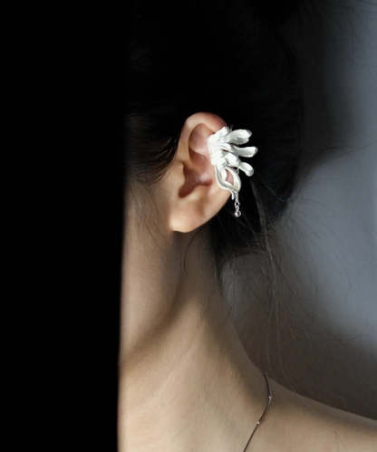 DIY Light Grey Sterling Silver Petal Tassel Stud Earrings