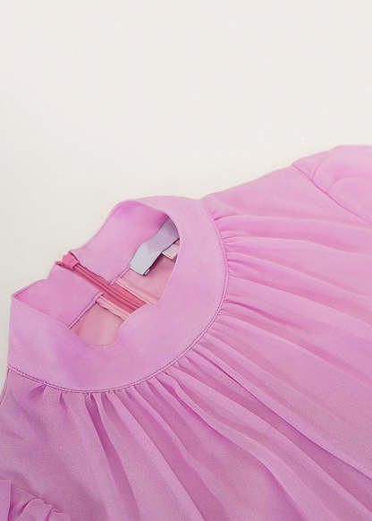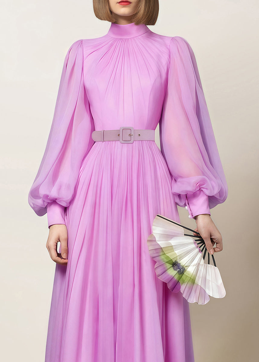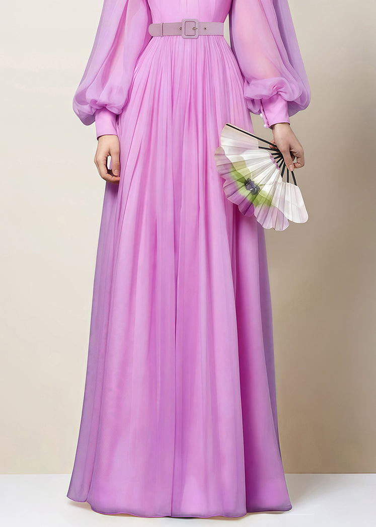 Elegant Pink Zippered Wrinkled Chiffon Maxi Dresses Fall