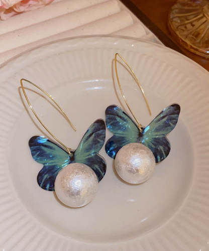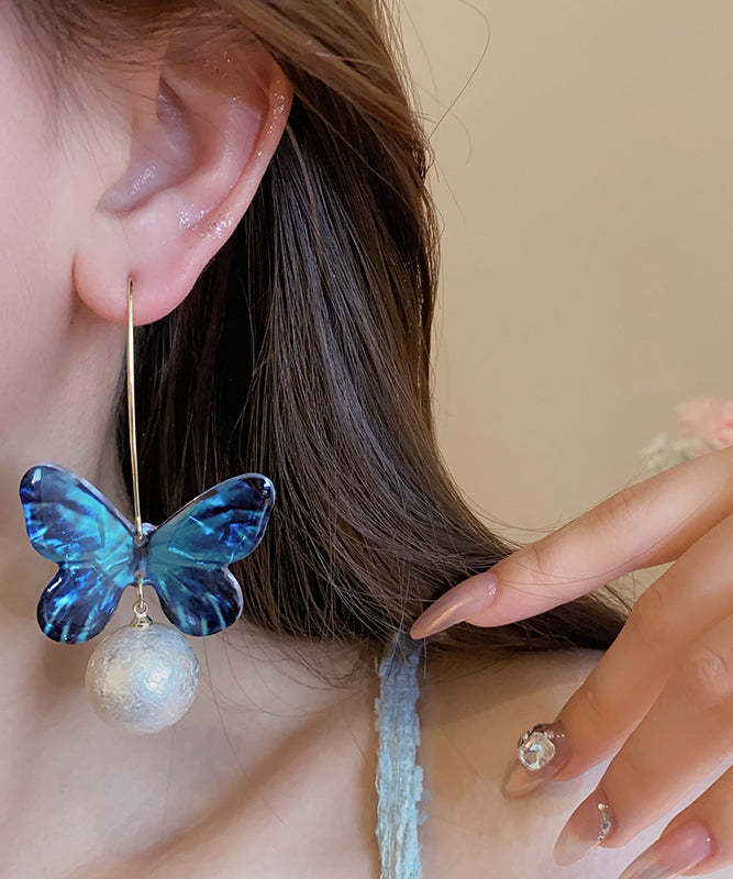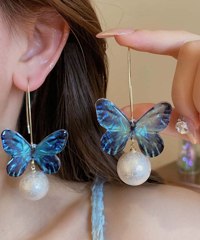 Fine Blue Acrylic Pearl Butterfly Drop Earrings