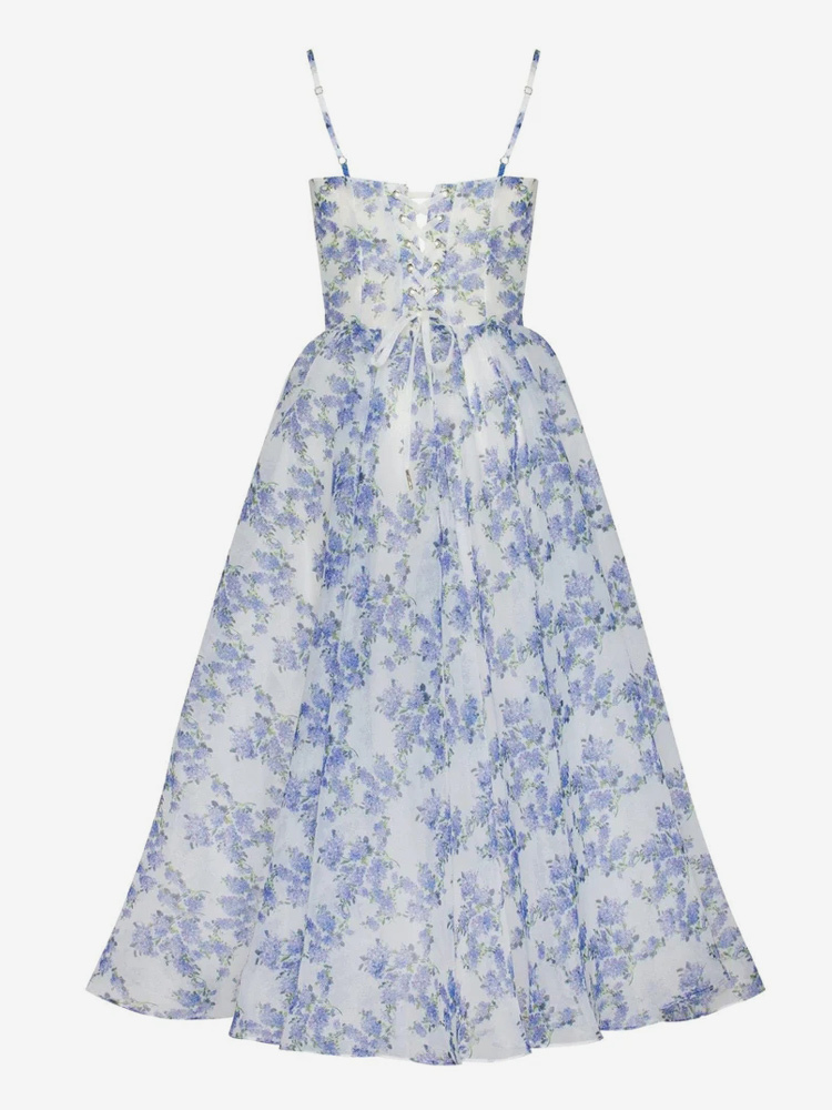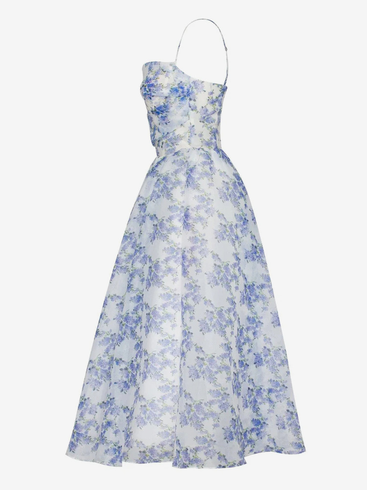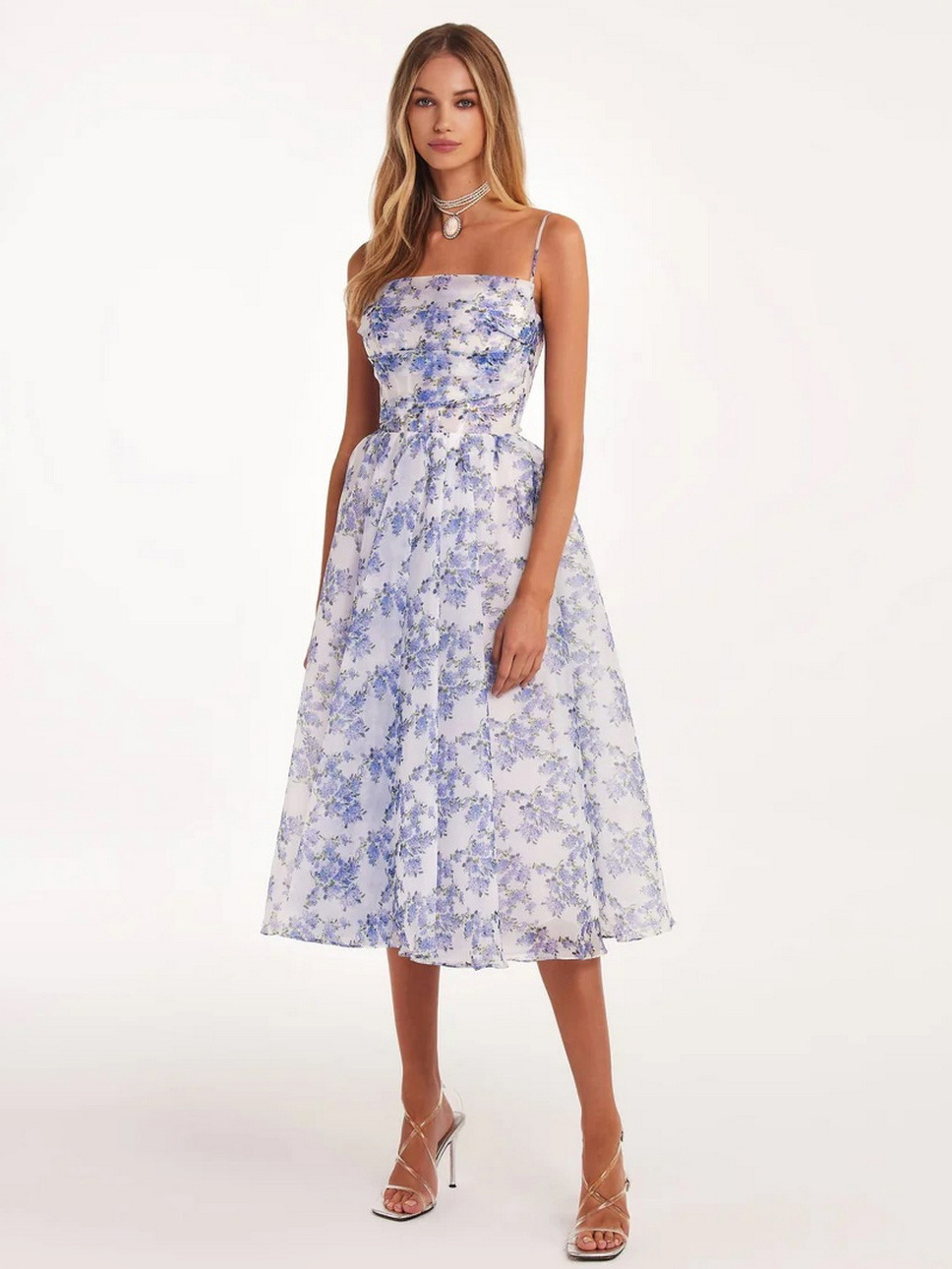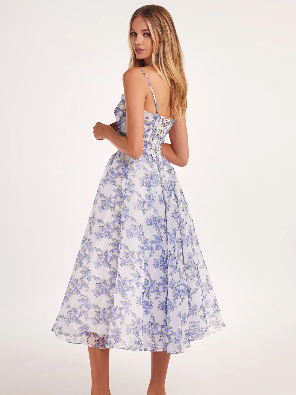 Floral Dress Spaghetti Strap Backless Lace Up Birthday Party Midi Dresses