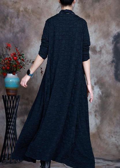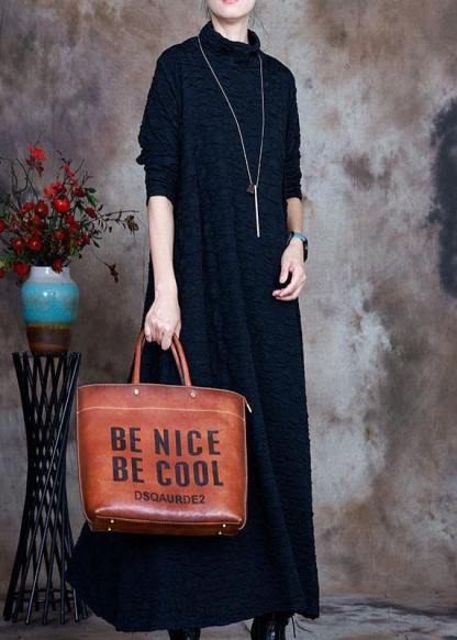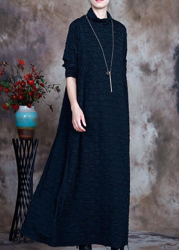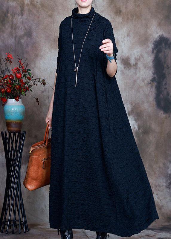 French Navy Turtleneck Circle asymmetrical design Fall Long sleeve Long Dresses