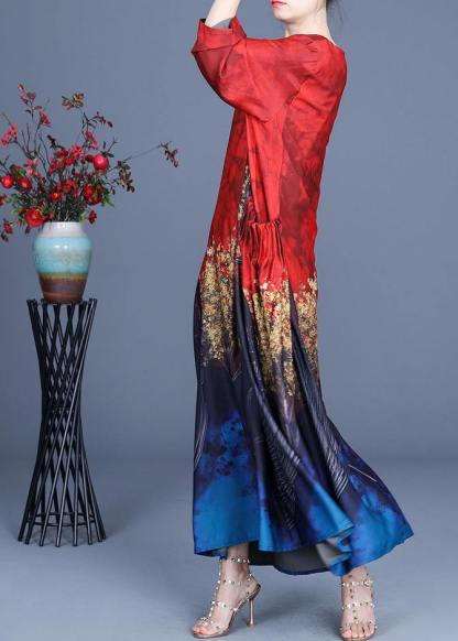 French Red Print asymmetrical design Summer Spring Vacation Dresses