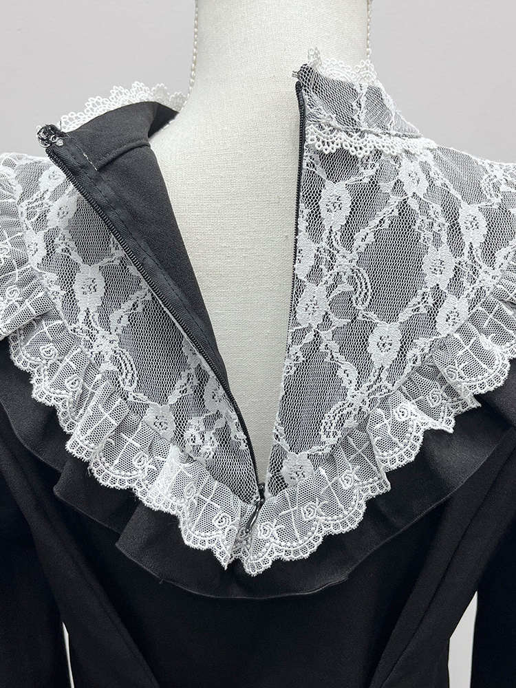 Product Description: Embrace dark elegance with this Gothic Lolita Blouse, featuring a high collar with delicate lace trim and long sleeves adorned with ribbon lace details. The chains decoration adds an edgy touch, perfect for Lolita fashion, gothic styles, or Victorian-inspired outfits. The breathable fabric ensures comfort, while the intricate design makes it a standout piece for any subculture wardrobe.