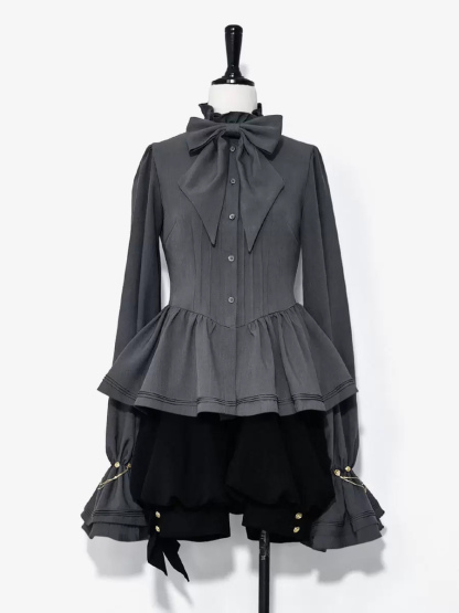Gothic Lolita Ouji Fashion Blouses Gray Long Sleeves Shirt With Ruffle Neckline