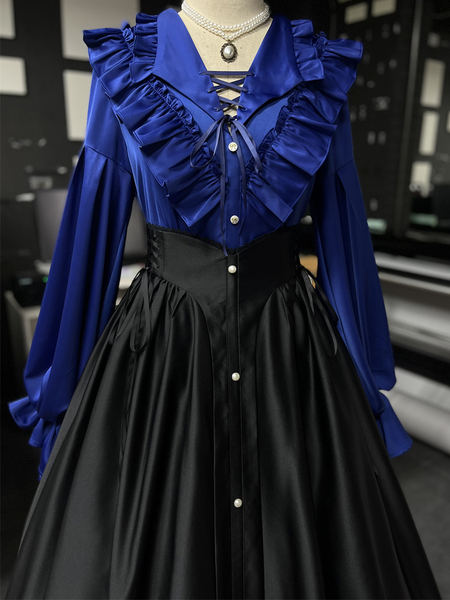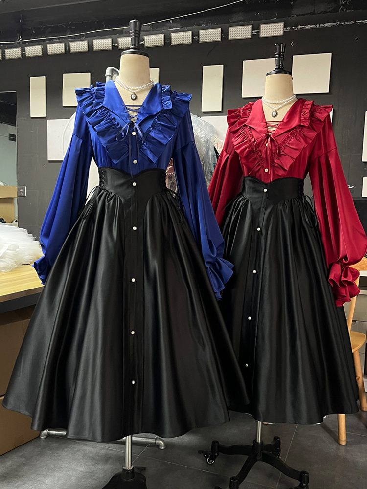 Gothic Lolita SK Lace up Ruffles Black Lolita Skirts