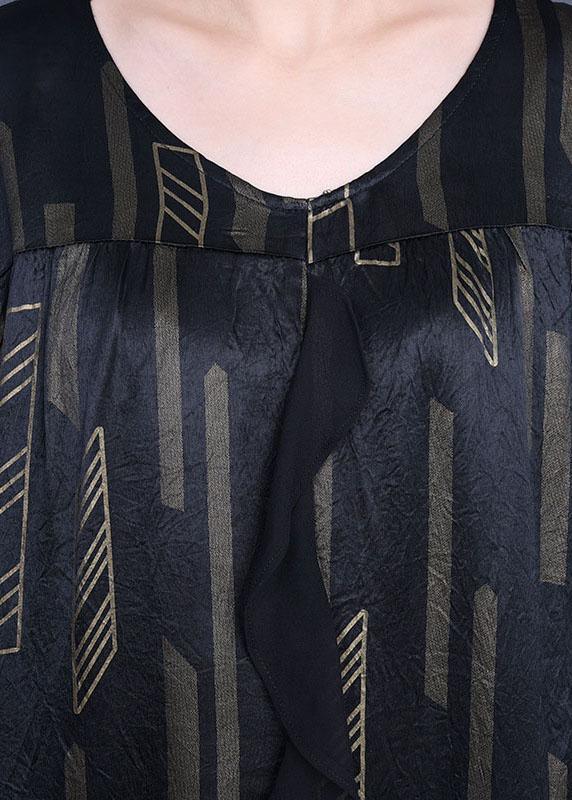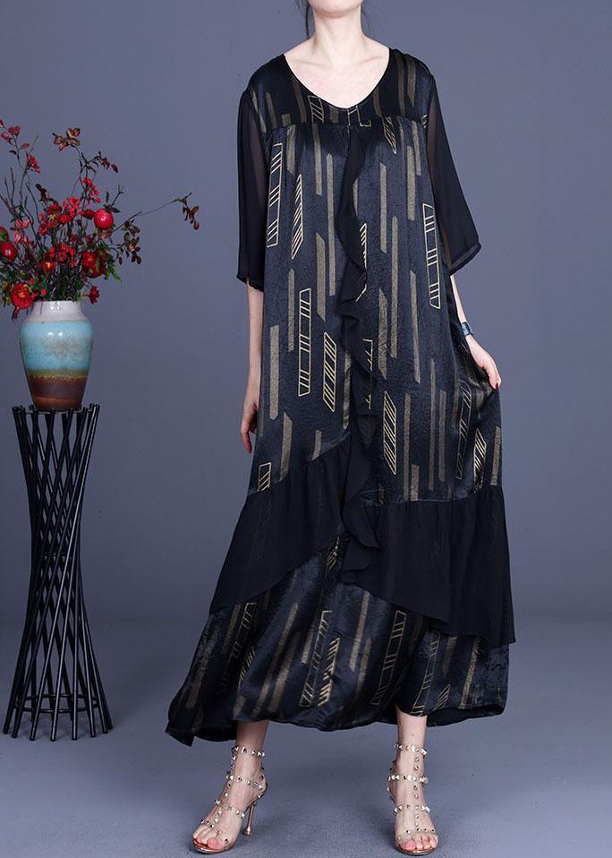 Green Print retro Ruffles Summer Silk Holiday Dress