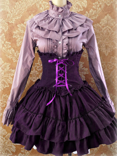 This high waist corduroy sweet lolita skirt is available in four colors rose read, dark red, lavender purple and cool black. The corduroy fabric is very suitable for the coming Autumn and Winter day because it's warmer than cotton and chiffon fabric.