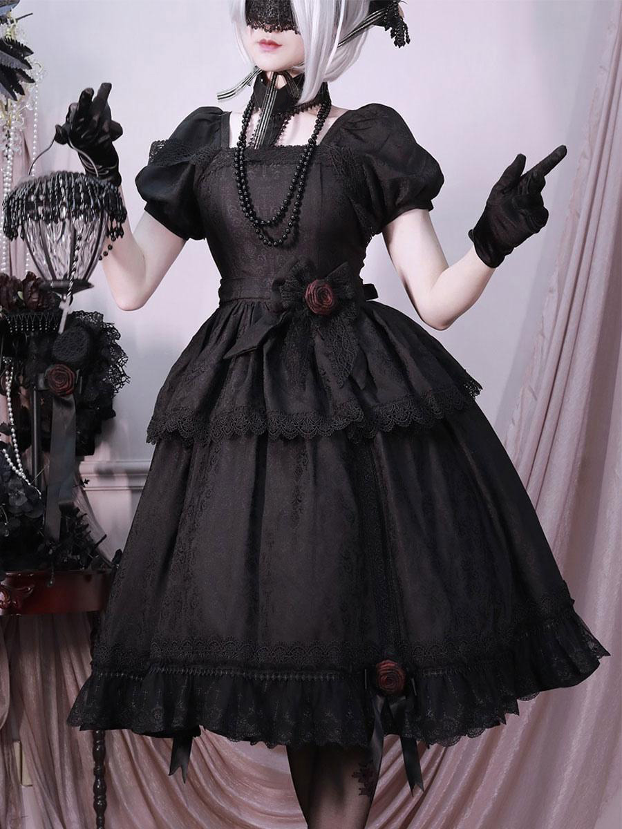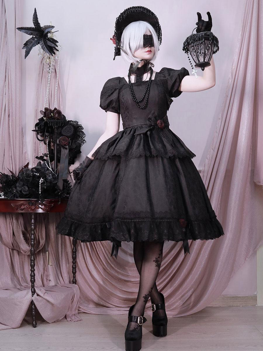 Halloween Gothic Lolita Dresses Ruffles Rose Black Black