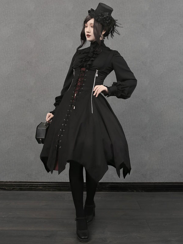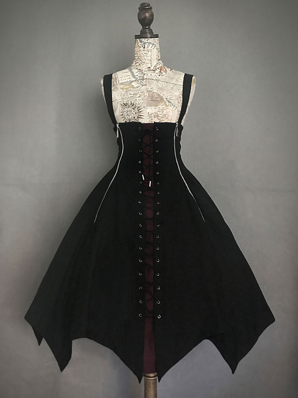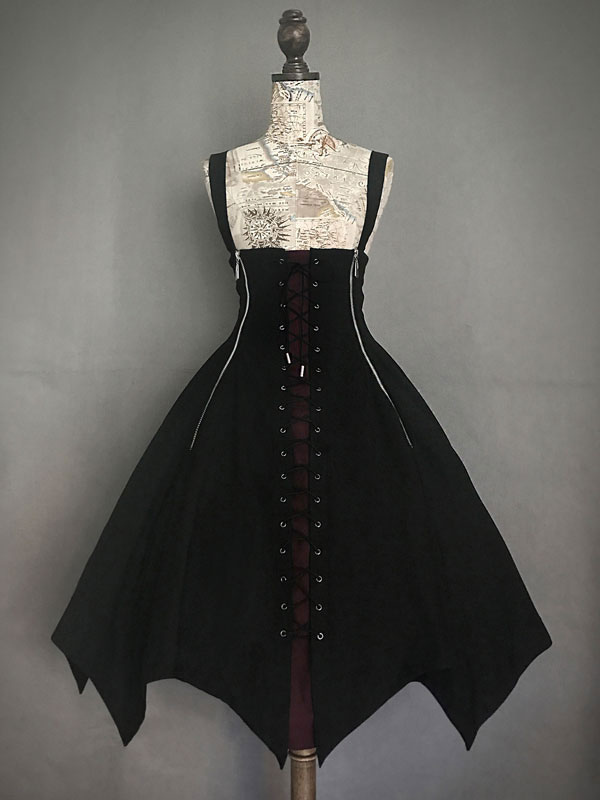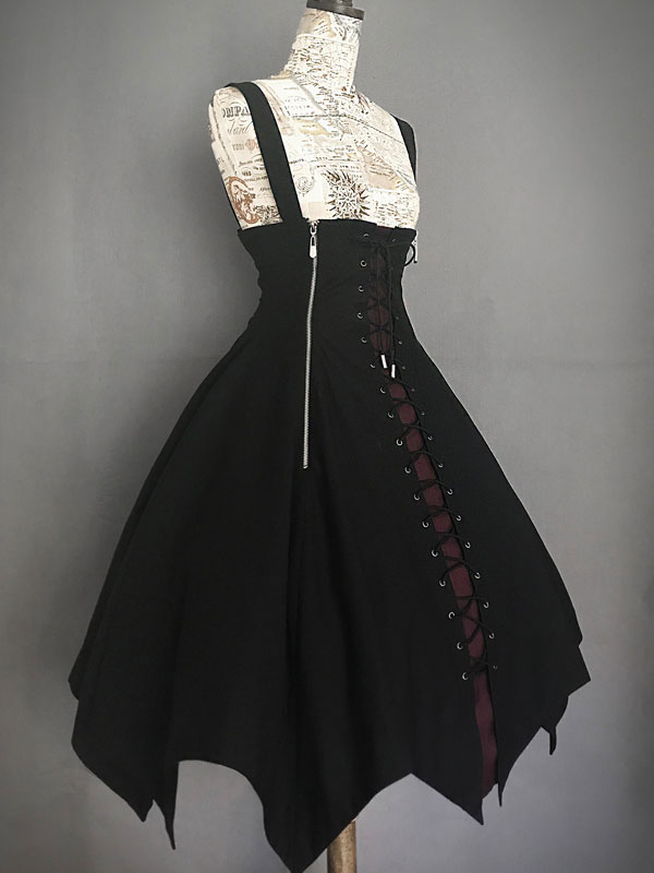 Halloween Gothic Lolita JSK Dress Black Lace Up Lolita Jumper Skirt