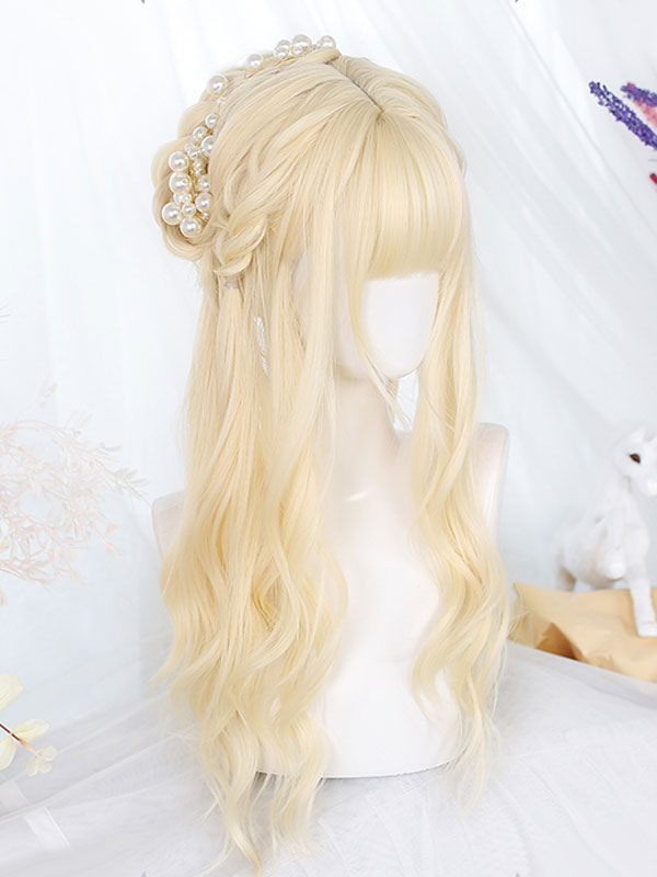Harajuku Fashion Lolita Wig Long Heat-resistant Fiber Light Gold Lolita Accessories