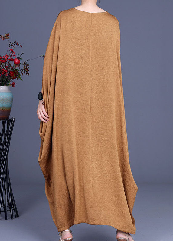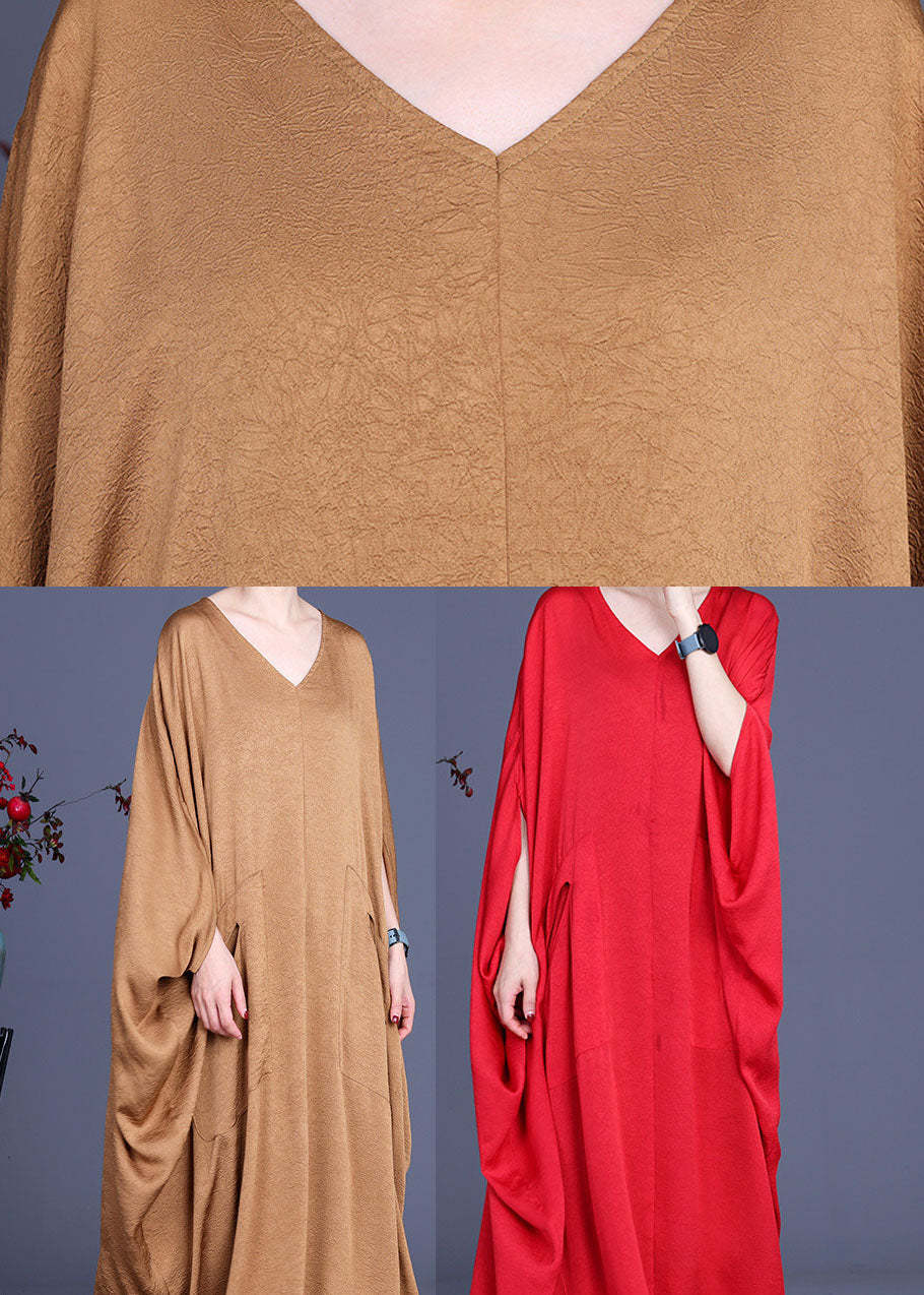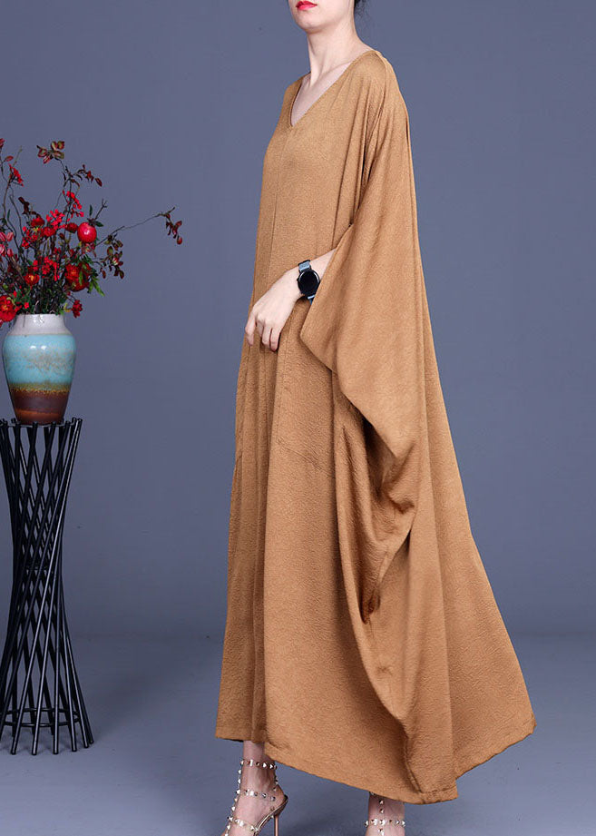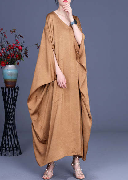 Italian Khaki V Neck Silk Robe Dresses Spring