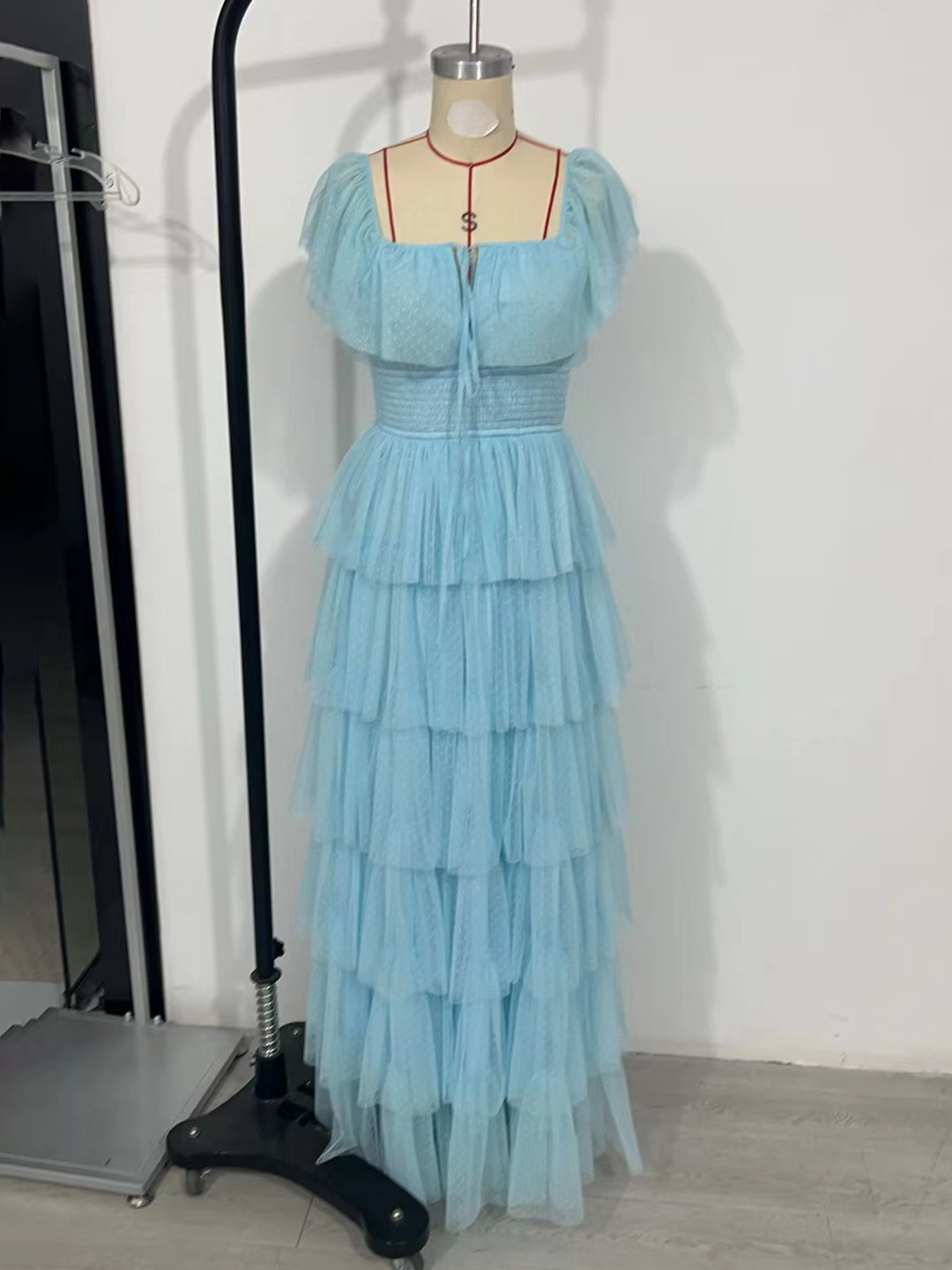 Layered Dress Cap Sleeves Sqaure Neck Elegant A-Line Prom Maxi Dresses