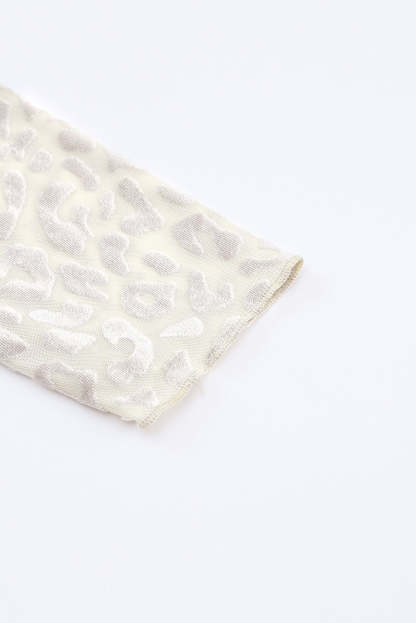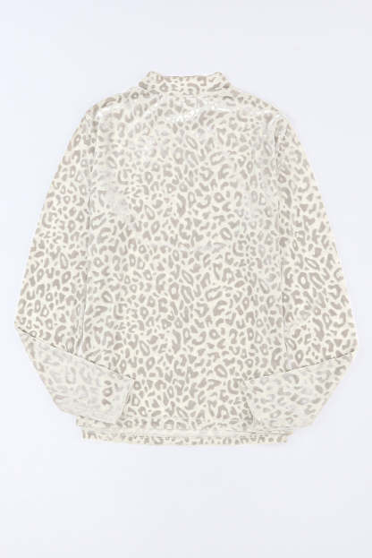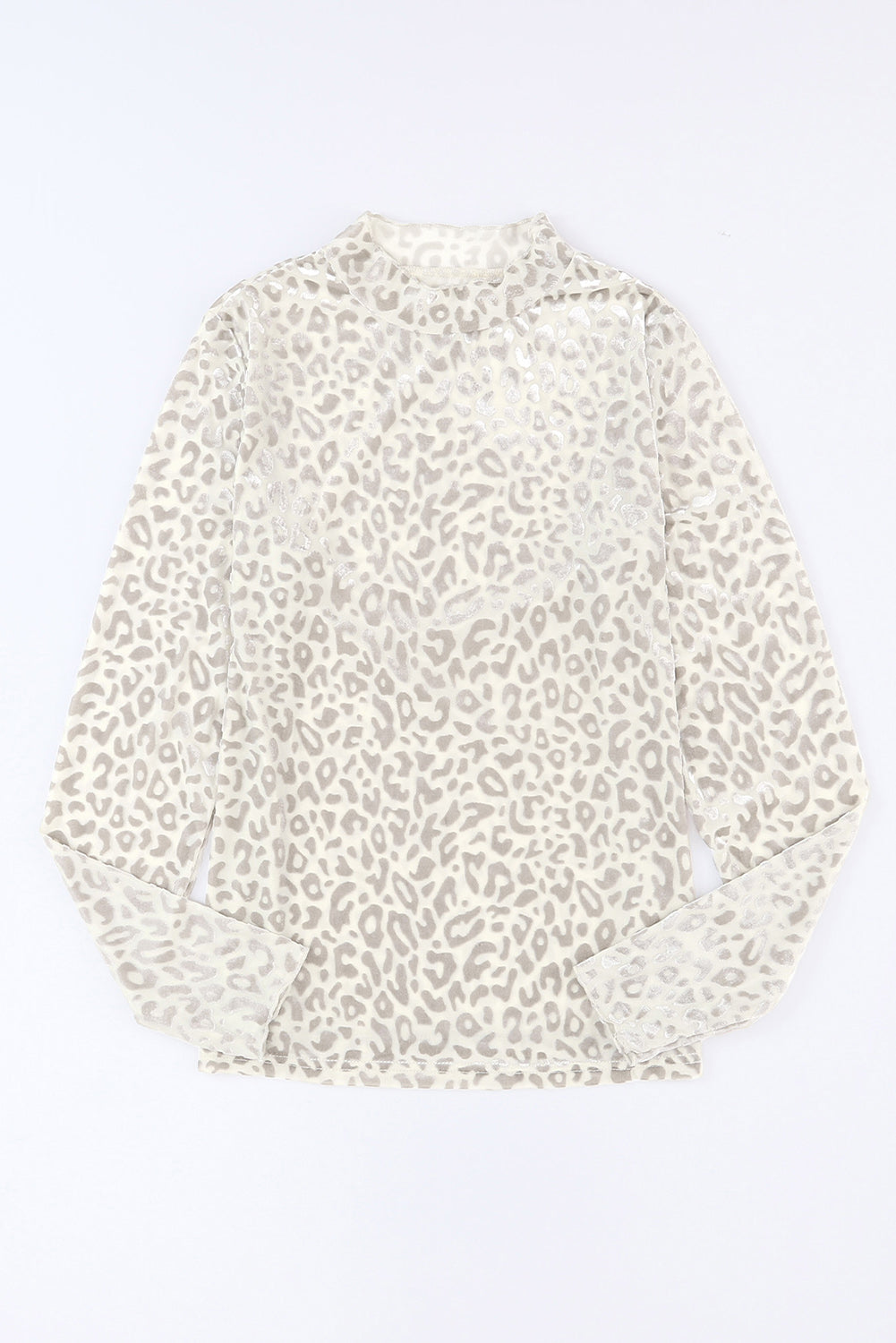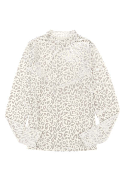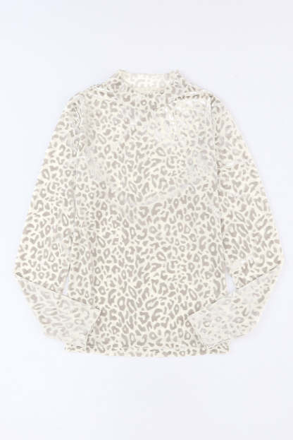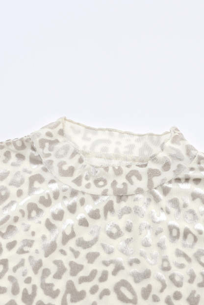 Leopardo Fruncido Cuello Alto Brillante Top de Manga Larga