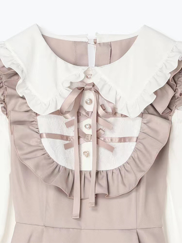 Embrace versatile elegance with this Lolita two-piece set featuring a lace-up long sleeve dress with adjustable corset detailing and charming puff sleeves, paired with matching ruffled shorts for playful modesty. The coordinated ensemble combines breathable cotton construction with romantic lace trim and pearl accents, offering both timeless sophistication and practical freedom of movement for tea parties, conventions, or seasonal outings in Sweet or Classic Lolita styles.