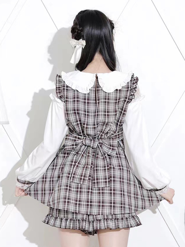 Lolita Tow-piece Suit Lace Up Long Sleeves Dress And Ruffles Shorts