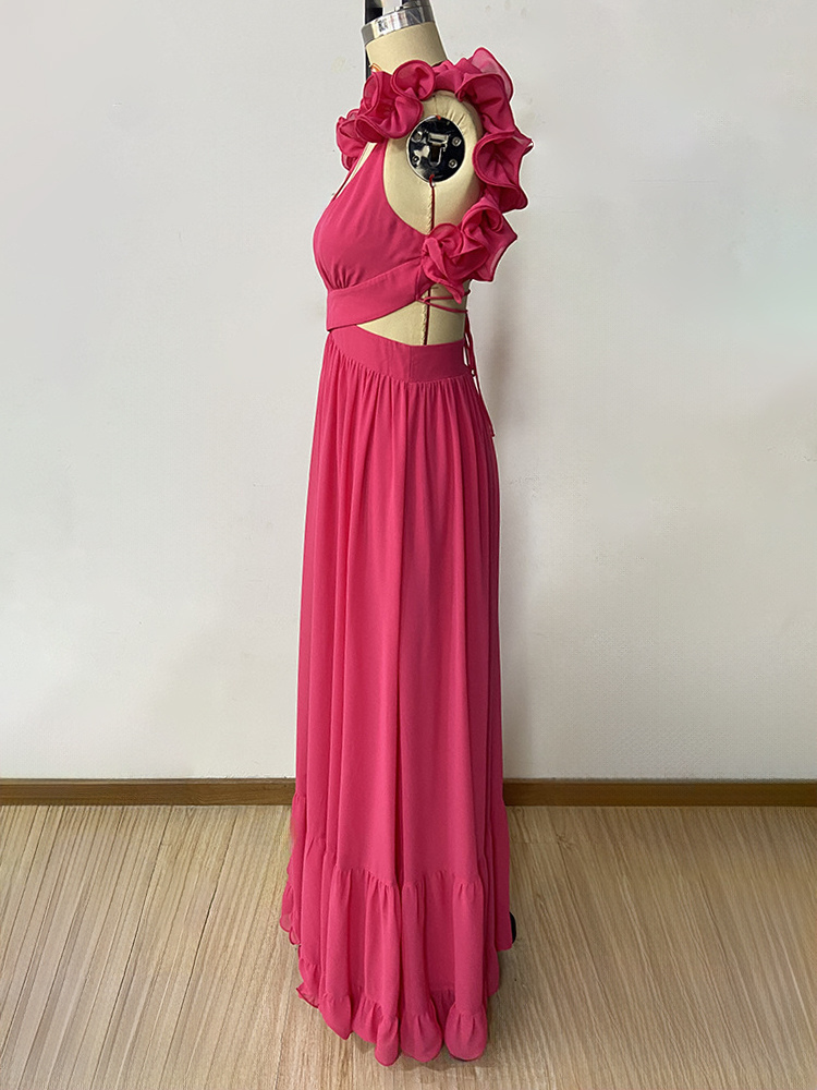 Party Dress 3D Flower Sleeveless Crossover Back Bandage Tiered Long Dresses